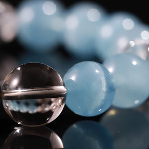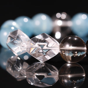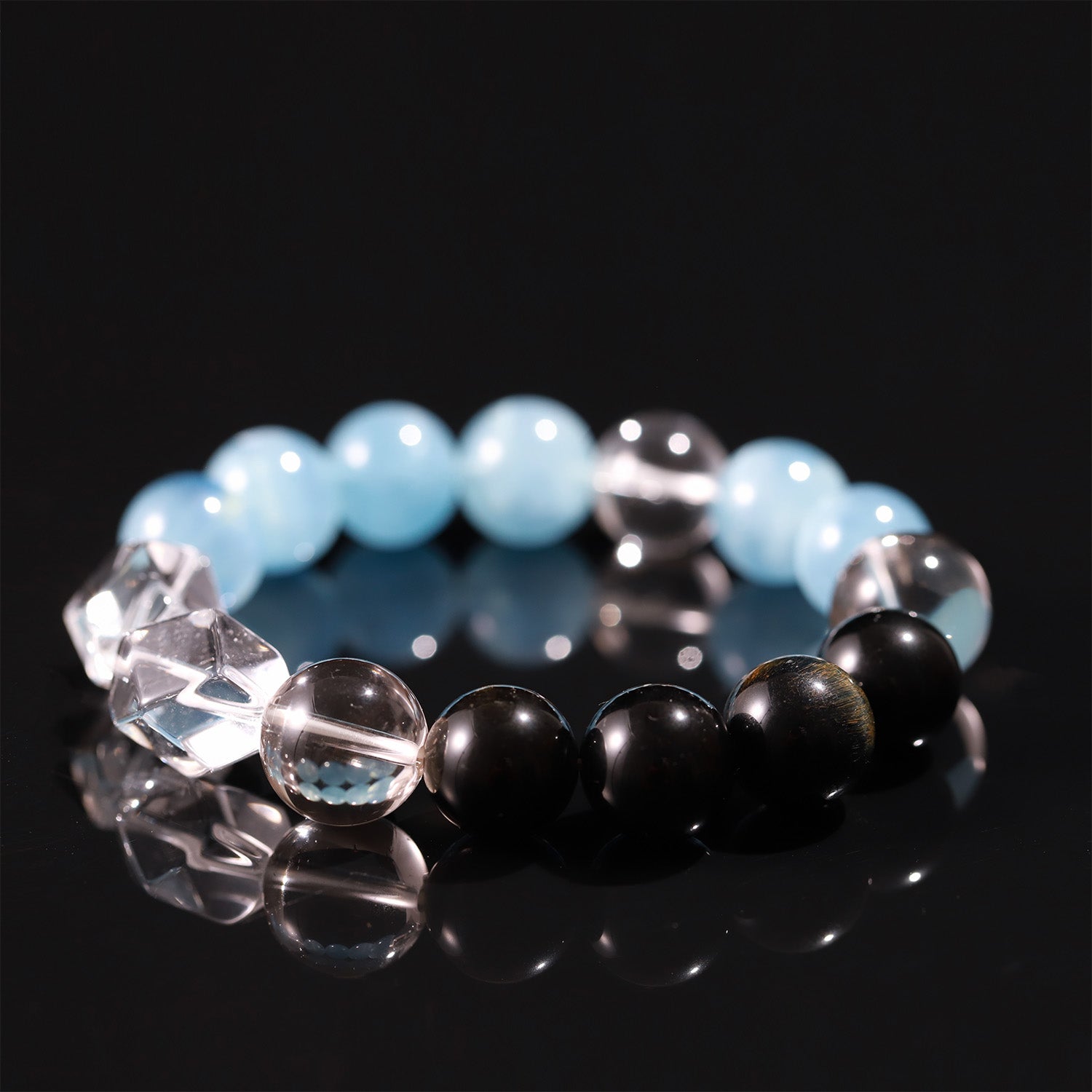 The Aqua Quartz Guardian Bracelet combines Obsidian, Aquamarine, and Clear Quartz.