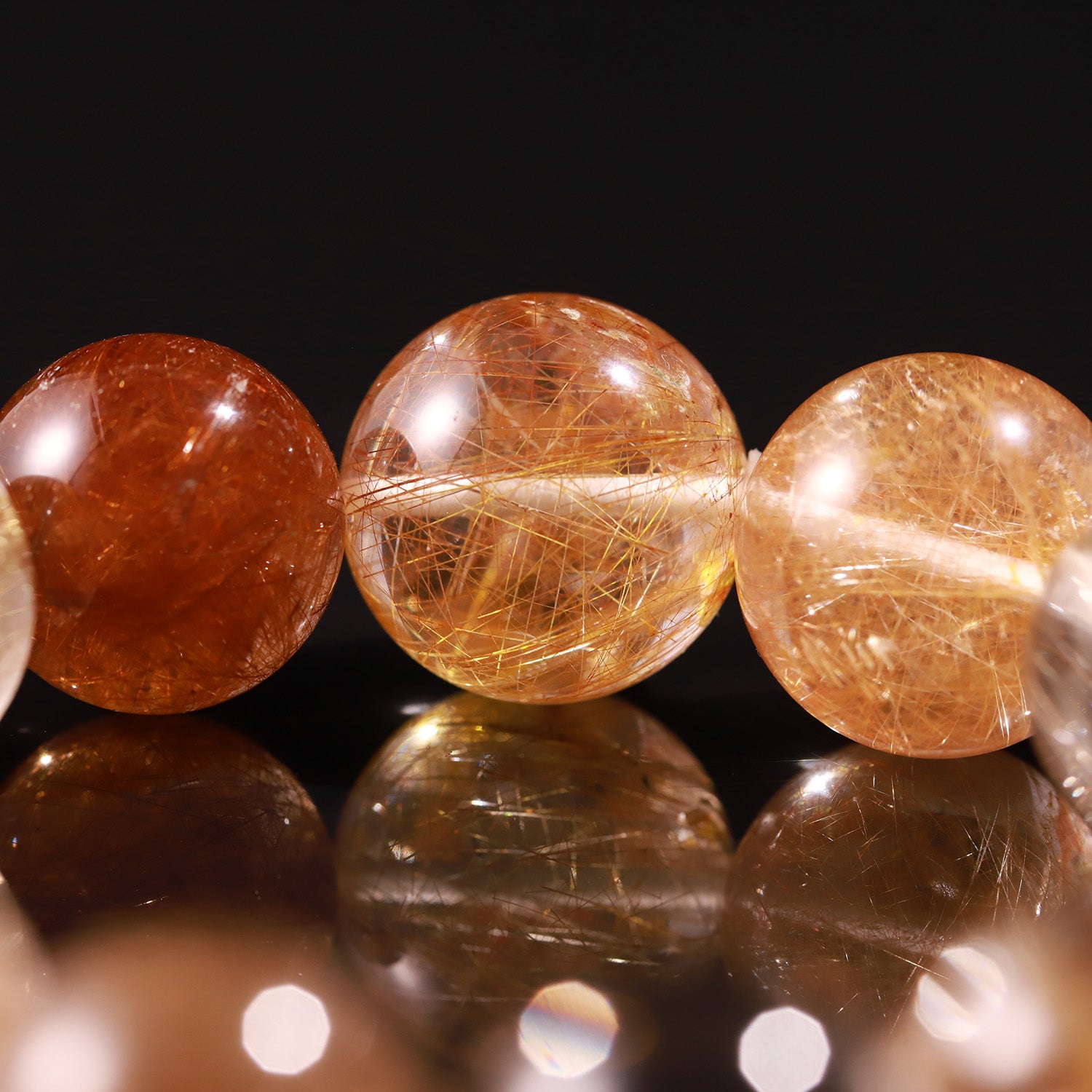 The golden threads within each bead channel solar energy — bringing light, motivation, and grounded success into your life.