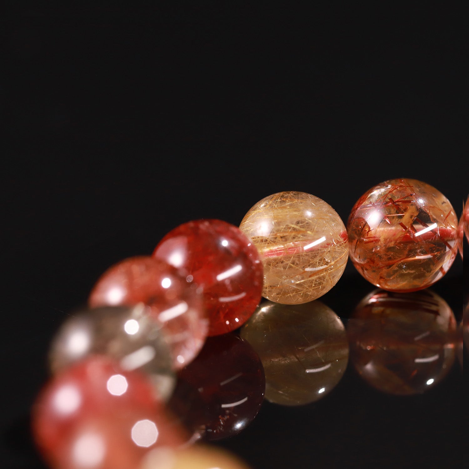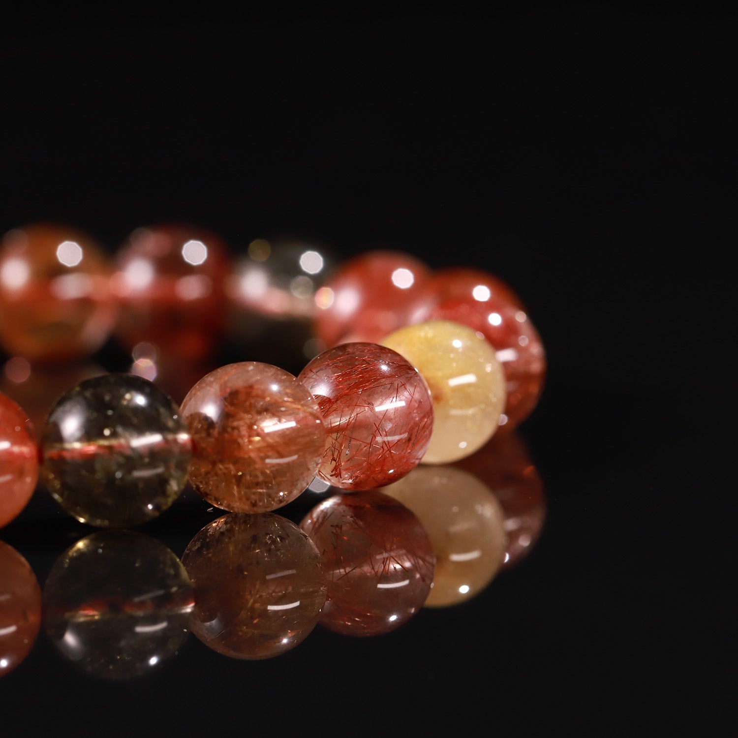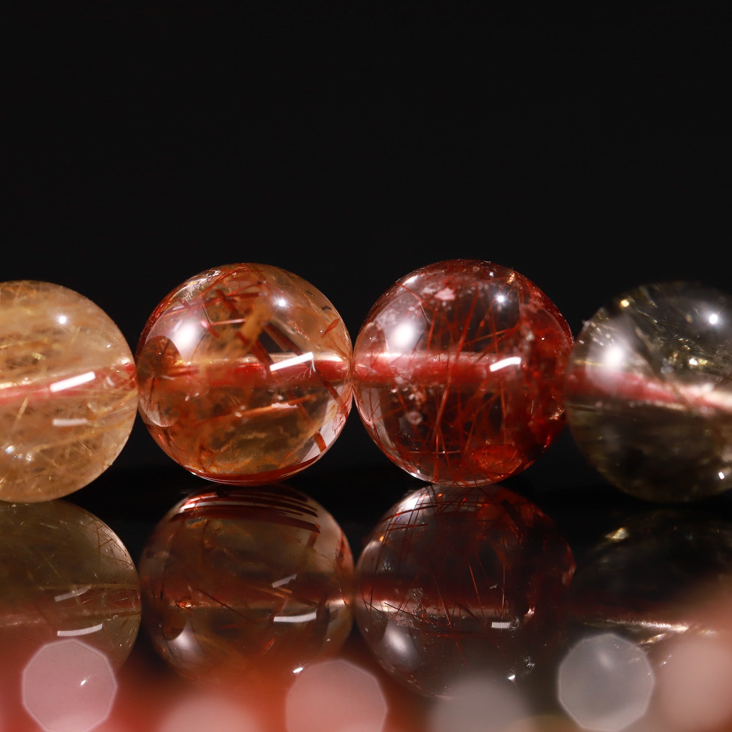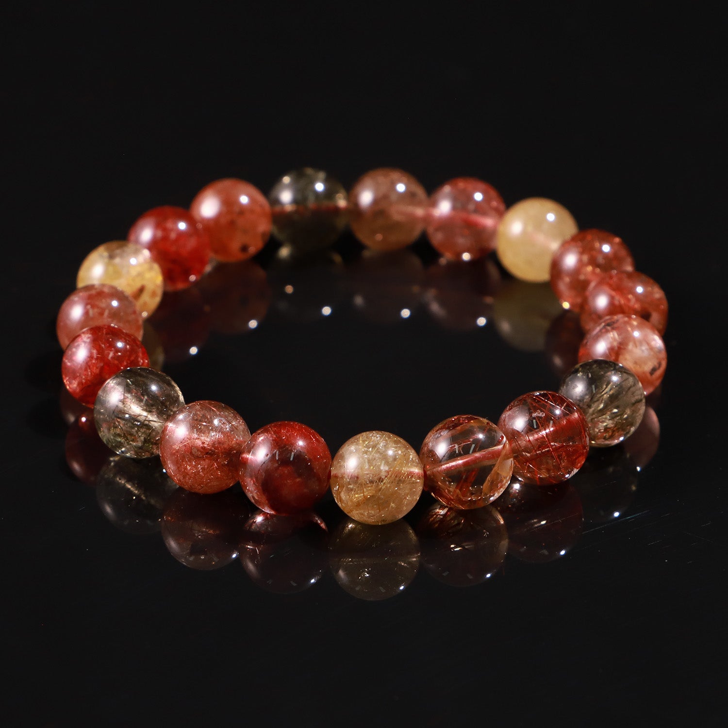 This bracelet merges the golden vitality of Citrine Rutile, the passionate energy of Red Rutile, and the grounding strength of Smoky Rutile.