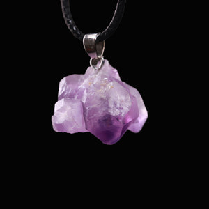 This pendant features a raw piece of amethyst, kept in its natural crystal form for a more direct, unfiltered energy.