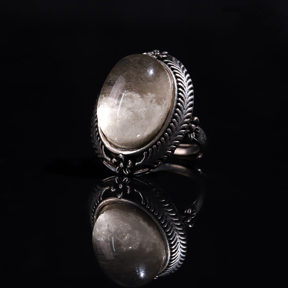 Material: Natural inclusion quartz crystal, antique silver-tone metal band