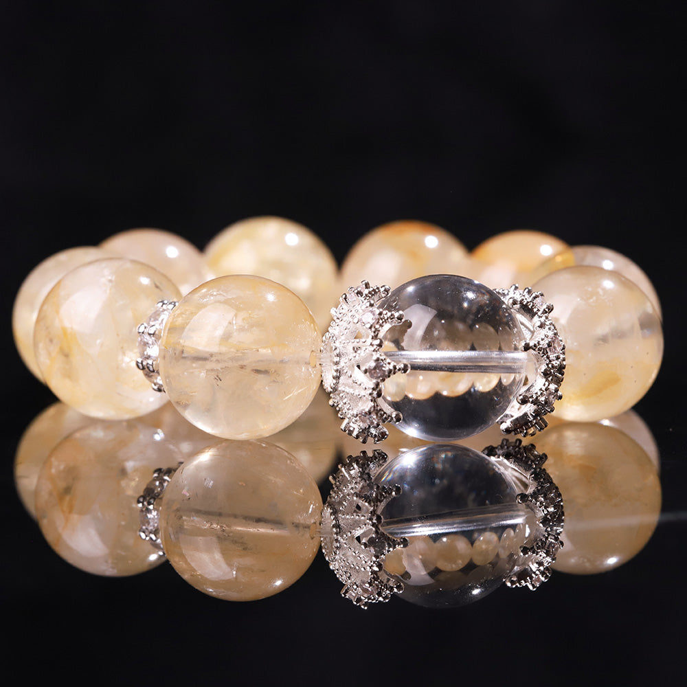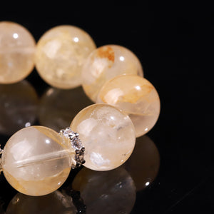 Material: Yellow Jelly Flower Quartz main beads, clear faceted Quartz centerpiece with metal accents