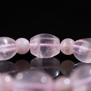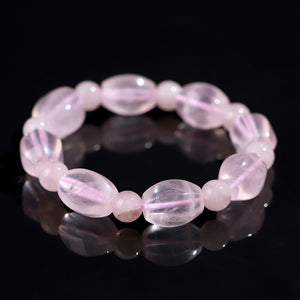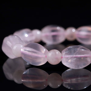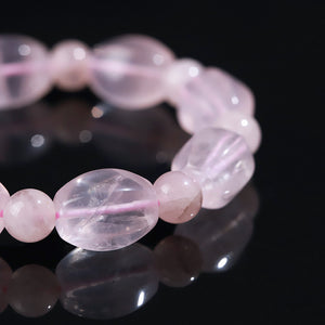 This bracelet features smooth oval Rose Quartz beads gently linked by small round beads, creating a soft, flowing rhythm around the wrist.